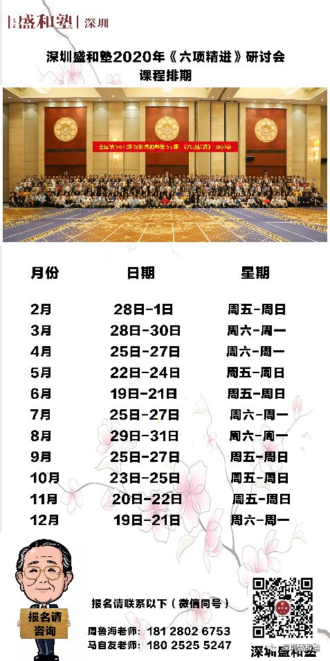 深圳盛和塾2020年《六项精进》课程排期