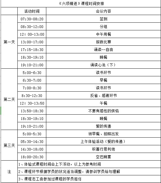3、因课程中有体验式活动,禁止孕妇、动过手术未痊愈、身体有重大疾病及异常的家人参加此课程。