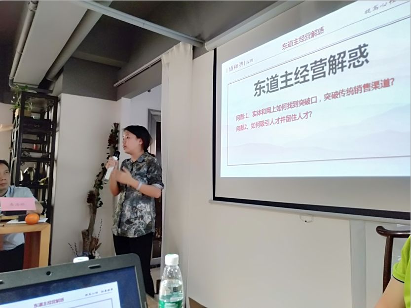 东道主为企业做了详细介绍并提出企业困惑,同时也简单的做了企业的经营报告分享,让我们从心底更加了解到中国的“茶”文化和“一生只做一杯茶”的品牌理念,与此同时也献上了茶艺表演,让在座塾员眼前一亮。